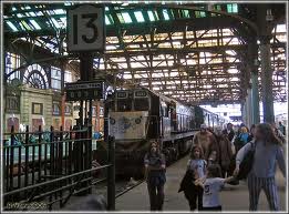 | ya dentro de la estación, al lado de los trenes. |