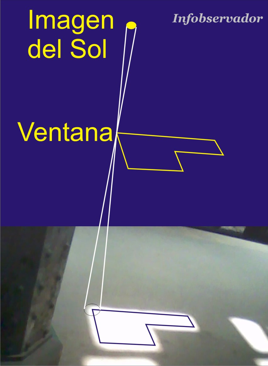Fíjate en esta imagen de la iluminación del Sol a través de un vidrio roto del techo: