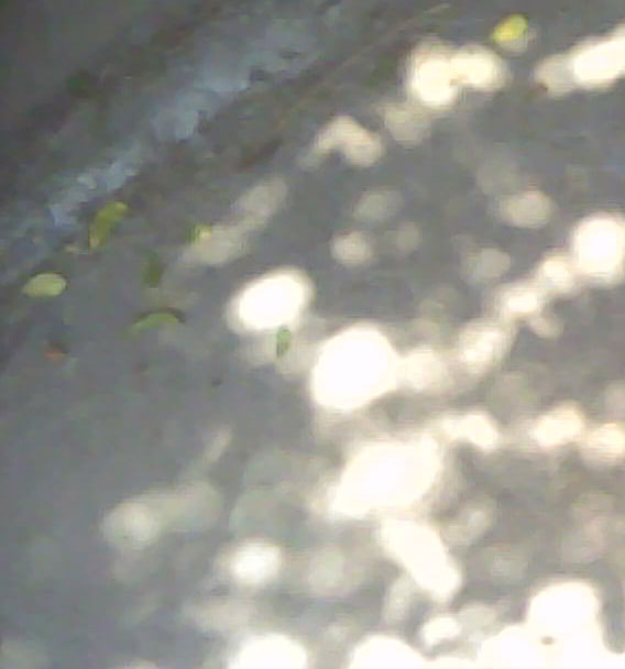 | Fíjate la diferencia con la imagen anterior, aquí la luz pasando a través de las hojas cuando hay un eclipse. Abajo a la derecha un detalle de la luz que tiene la forma del eclipse. |