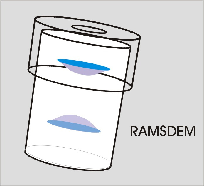 En el siglo XVIII Ramsden diseñó un ocular mucho mejor, también de dos elementos, pero todavía está lejos de los estándares de hoy (aunque se utiliza en algunos microscopios que tienen relaciones focales muy altas). Como da foco sobre la cara de la lente mas cercana al ojo, suelen usarse para poner un retículo (5). Muchos de los oculares de los buscadores son Ramsdem. Esto hace también que cualquier pelusa que se deposite en esa misma cara sea visible, lo cual no es muy cómodo...