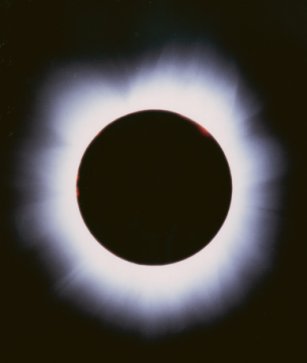 | Eclipse total de Sol. Puede verse claramente la Corona solar. El circulo negro es nuestra luna. |