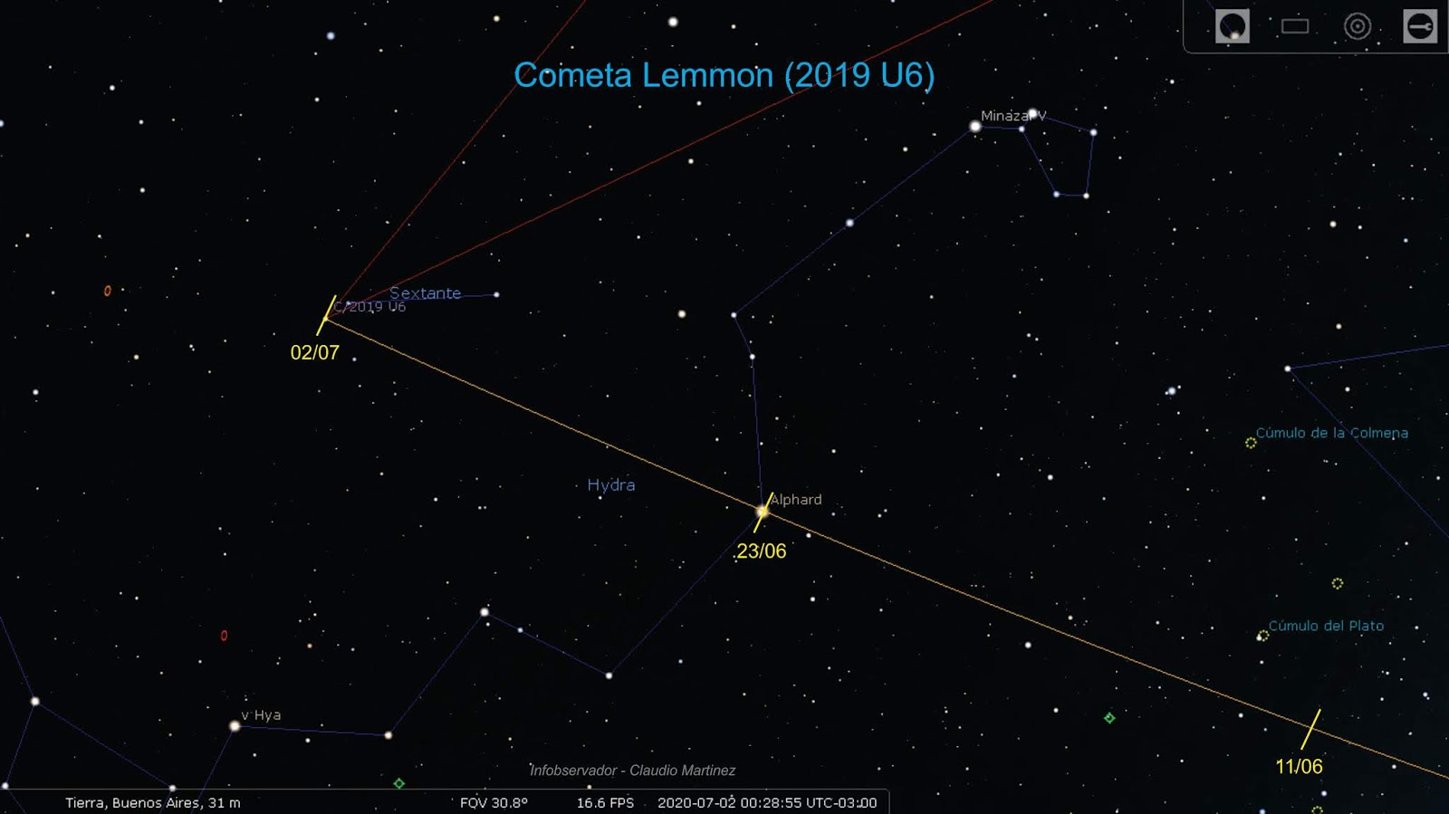 Pasará muy cerca de objetos brillantes o estrellas notables, lo que facilitará encontrarlo. De hecho el 27/5 pasa a pocos grados de Sirio.