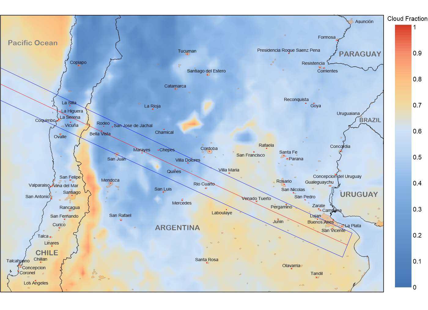 Como ves en el gráfico, no hay grandes cambios en cuanto al porcentaje de nublado por longitud. Fíjate que en el mejor lugar de Argentina hay un 30% de probabilidad de nublado, y en el peor, 44%... no hay grandes diferencias. Por ello, cerca de la cordillera o del Atlántico es relativamente lo mismo.