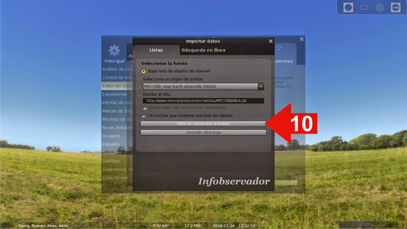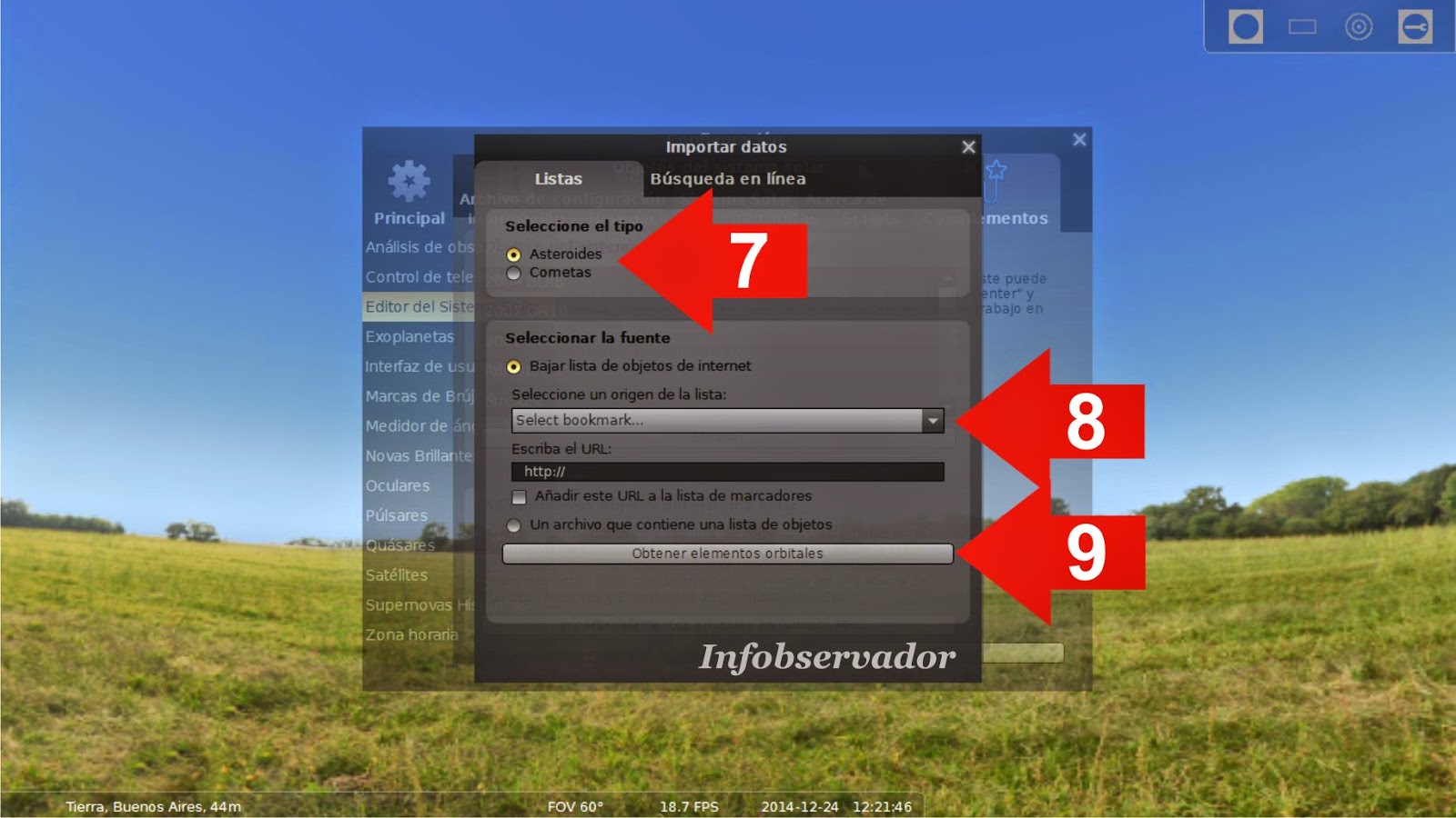 Luego presionas (6) "Importar los elementos orbitales del MPC..."