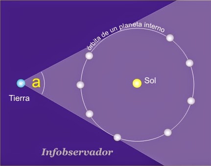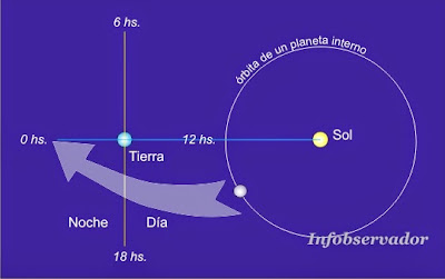 Los planetas internos siempre están cerca del Sol. Cuando nuestra estrella está sobre el horizonte, es de día y por lo tanto, los internos no son visibles, salvo durante un tránsito o un eclipse total de Sol.