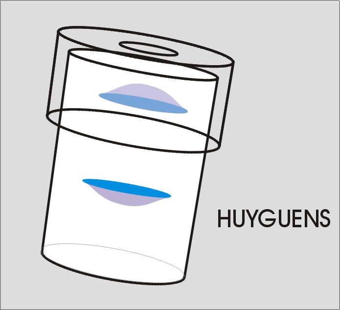 El ocular de Huygens es de dos elementos (4). Fue inventado por Christiaan Huygens (se pronuncia “joyguens”) y es un diseño del 1600. Este diseño es inferior a los más recientes, así que es ahora obsoleto, salvo algunos telescopios de bajo costo que todavía los poseen. El eye relief es bastante corto y el campo aparente es pequeño.