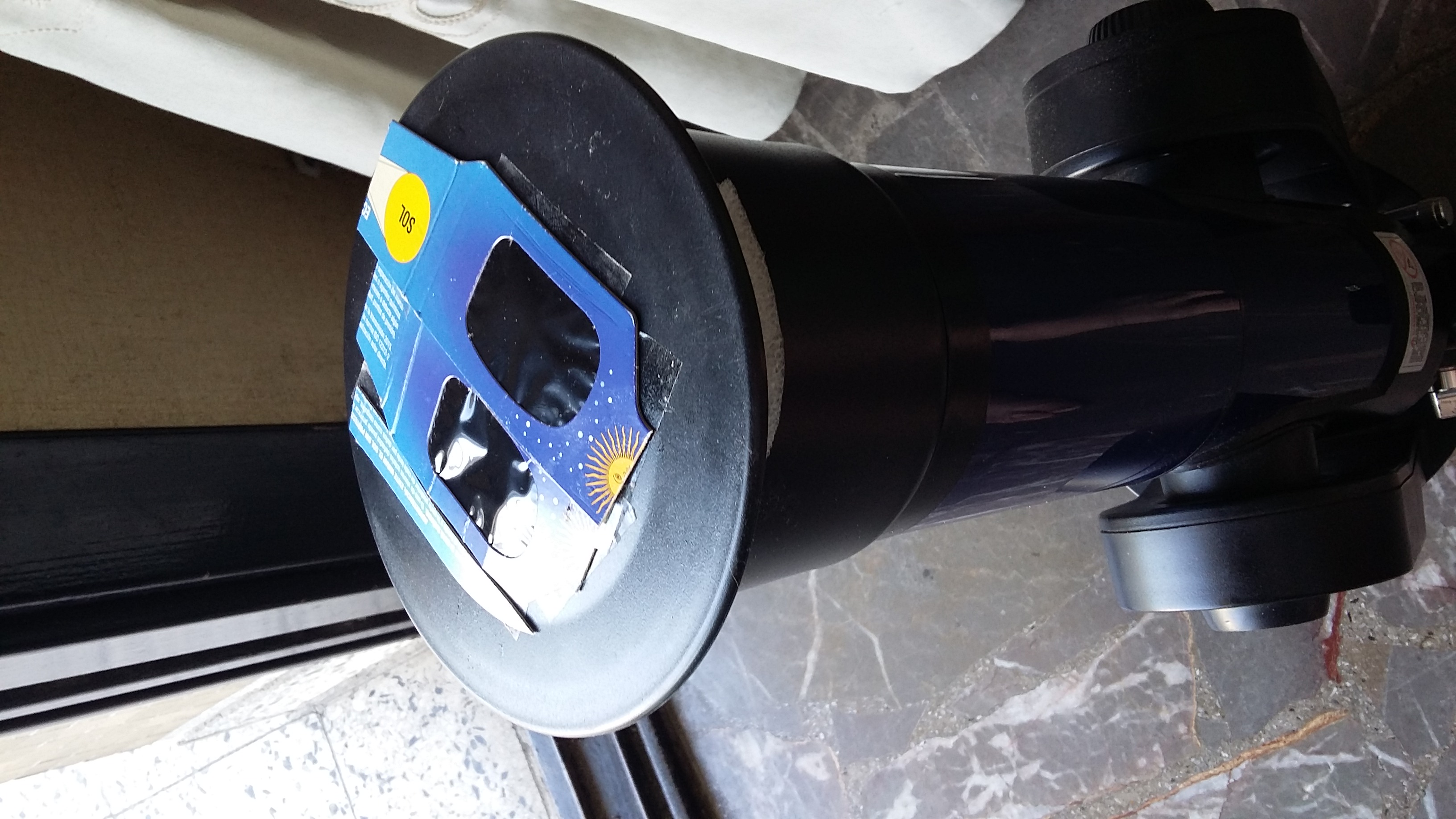 Entre todos los anteojos de cartón con filtros solares de alta calidad que tenia, uno se rompió pensé en usarlo para filtro solar de un telescopio.