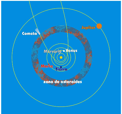 'barre' ese gas formando la cola del cometa. Ese el motivo por el cual la cola siempre se encuentra en sentido contrario al Sol. Se calcula que como los asteroides, deben ser cientos de miles, cuyo origen es la denominada 'Nube de Oort', una nube de núcleos cometarios que se encuentra rodeando al Sol, a enorme distancia. (del orden de 1 año luz).